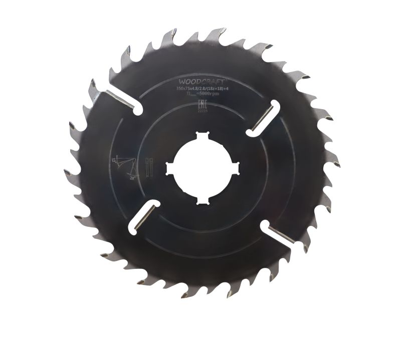 Пила дисковая WoodCraft 350х75х4.8/2.8/(18z+18)+4 (13,5х7,5 - 4 шт., под 90 гр.) (п.у. 28 гр.)